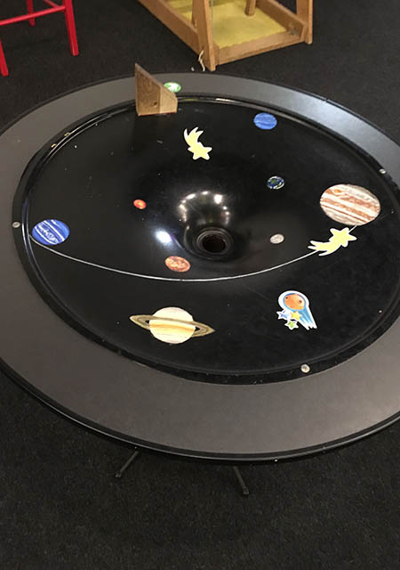 На ней представлены различные изобретения ученых мира. Среди них – призма и колыбель Ньютона, теорема и чаша Пифагора, волновой маятник, мост Леонардо да Винчи, лампочка Эдисона, плазменный шар, предшественник калькулятора – арифмометр, сам калькулятор и многое другое.